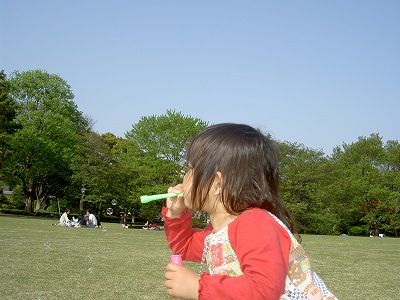 今日もお天気だったので、ピクニックへ行ってきたこれはシャボン玉を追いかけている図広々として、都心とは思えないほどの静けさで素敵な場所でした桜も終わり、今はつつじが見頃お天気に恵まれた週末でした。
