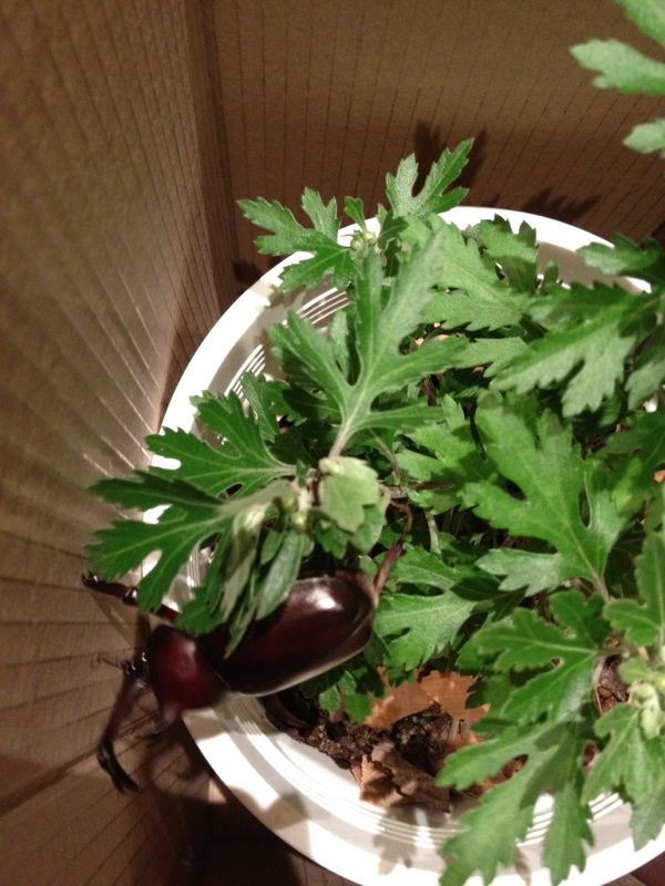とてつもなく珍しい事が起きた。 JR大井町からの深夜の帰り道、カブトムシを捕まえたのである。しかもオスだ、、 アスファルトの上で、かすかな街灯の明かりを鈍く反射させて這っている虫がいた。とっさに大型のゴキブリか?と身構えたのであるが、よく見ると風格があるカブトムシだった。 逃がそうにも周辺には林が無いどころか、土が無い。アスファルトだらけで、このままでは確実に死んでしまうと思い、家に持ち帰り、植木を段ボールに入れて取り敢えずそこに入れました。エサも無いのでスイカを少し入れました。 テレビでカブトムシに西瓜あげると死ぬとかいってたが、、、、昔はそれで結構生きてたけど。。。明日飼育環境を整備しよ! 一体何処から飛んで来たのかな?今日は気温が異常に高くなったからサナギが孵ってしまったのだろうか?台風で遠くから飛ばされて来たのだろうか?