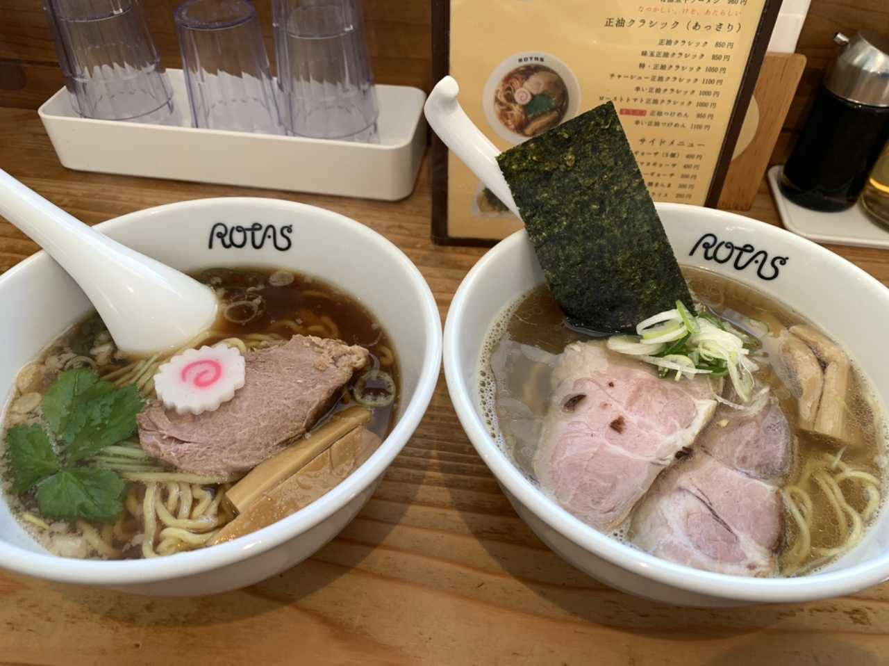食べログ3.47を叩き出している。右が煮干ラーメン、左は醤油ラーメン。