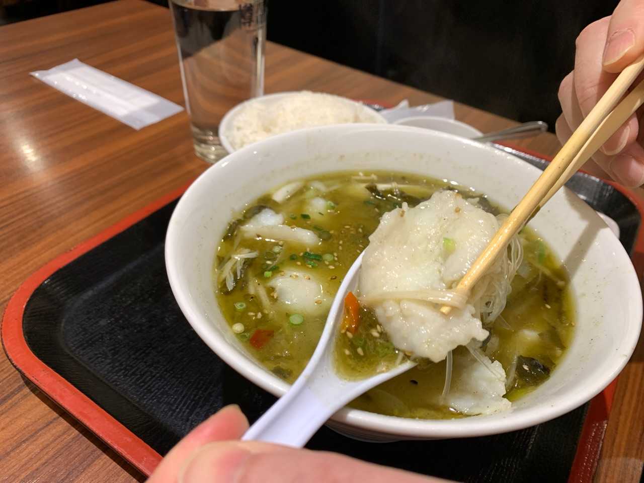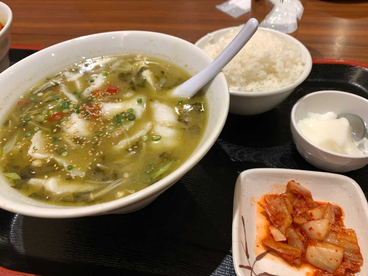 中国人の知り合いが上海と全く同じ味がすると言った、白身魚の漬け高菜煮込み定食。いつも私はこれを注文する。本当に美味しい!