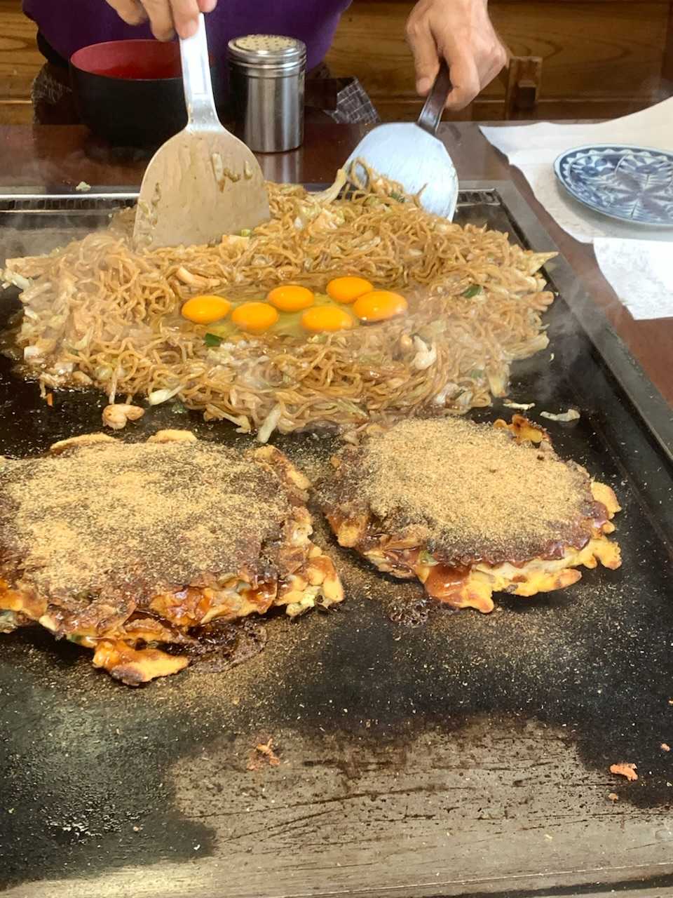 席で焼いてくれるのだが、最後に真ん中に卵が投入され、半熟のうちに焼きそばと食べると良いと言われる。