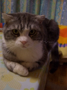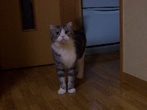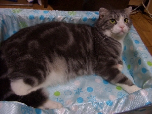 今日も近所に住む叔父が、何やらお土産を持ってやってきました~『シェイト~お土産だって~』犬用サイズの冷え冷えベッド『 これオデのベッド? 』『 ちょっと小さいかニャ? 』犬用なのに、ギリギリだね・・・。『 冷え冷えで気持ちいいにゃ~ 』『 ねぇねぇおじちゃん』『 お礼にオデの またたびジャーキーあげるニャ 』『 いらニャいって・・・。 』