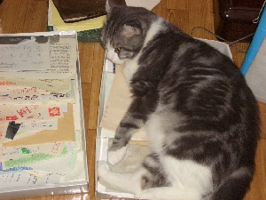 引越しの日程が決まり、まずは実家から片付けに行ってきました。マンションとは違い、決まった曜日にしか物が捨てられないので結構大変。。実家にある荷物の大半は、私の残した物ばかり。。( ̄∇ ̄*)ゞいつかの日記にも書いたけど、鍋だけを持って嫁に来た私・・・。ベットや、書棚・衣装ケースもそのまま(←家出か・・・?)まずは、書棚から片付けることにすると昔の写真が沢山『若いね~!おおww太ってる~ あなつかし~!』とか言いながら、全然捗らず。。そして自分でも覚えていない13歳頃からの日記や、交換日記文通していた手紙などが大量に出てきましたそしてお約束!!じっくり読みました一番懐かしかったのは、高校生の頃の日記同じテニス部の男の子の事が、書かれていました3年間ずっと好きで、仲良しだったけど友達のまま!学校での様子や、部活での様子が色々今の私が読むと、どう見ても両思い当時の私は悩みまくり~でも凄く楽しそう☆彡ディズニーランドの修学旅行で、一緒にスペースマウンテンに乗ったよって書いてありました。( ^ ^ )別のクラスだったのに??? その後はどうなったの?と読み進めてみましたが、進展なし。。スペースマウンテンで満足したようです。(* ̄m ̄)ノ彡☆若いって良いね~☆彡所でいつ片付けは終わるんだろう。。( ̄∇ ̄*)ゞ持ち帰った書類をシュレッターにかけていると、シェイト君も邪魔をする・・・。