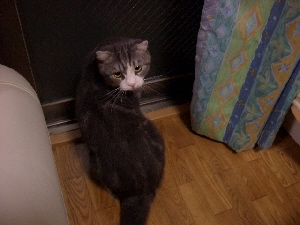 さっき旦那様のご飯を作っていたら、ぎっくり腰になっちゃった・・・。それも冷蔵庫の、奥にある物を取ろうとしただけで・・・。12時過ぎに旦那様が仕事から帰ると冷蔵庫を開けたまま、うずくまる物体が。。動けないほどではないけど、屈めないズボンが脱げない誰が引越しの用意するのかしら~・・・。30歳を過ぎると、色々ガタがきますね~。。明日アレルギーの検診と、外科にも行って来ま~す 『 ズバリそれは歳のせいニャリ~。。 』