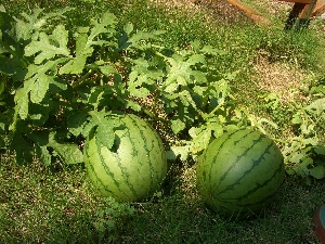 小玉スイカ 受粉41日目この前収穫したてから、一週間目に2個目も収穫しました前回のコよりも少し小さいけど、約2キロで47センチ中も綺麗に赤くなってましたo(*^^*)o出来が良かったので、旦那様の実家で皆で食べたよ~甘くておいしかったとっても楽しみにしていた大玉スイカ君は今日見ると枯れていた・・・。長雨の影響で、どこの畑でも苦戦しているらしいけど小玉スイカ君より小さい 大玉スイカグレープフルーツほどのサイズですなんだか不味そう。。大玉スイカは失敗に終わりましたそしてかぼちゃも、うどん粉病にやられて枯れてしまった。。4本中、実は3個!一番元気の良かった苗の実が、一番大きい!左から2号君、3号君、4号君の実です。4号君は、初めから病気がちだったので一番小さい(^_^;)かぼちゃは難しいね~。どんなお味がするのかな?明日お料理してみます。( ^ ^ )/