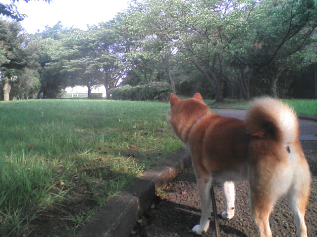 昨日、御仕事もせず、ヘタヘタ歩いて草ばかり食べていた柴犬コロ。 原因は、おばあちゃんが、山のように焼いた牛肉を脂付きで与えていたためだったようです。 10度目くらいになる「暴食禁止令」を言い渡し、様子を見ていたところ、昨日はドライフードをわしわし食べ始め、夕方の散歩では、バウバウ的な元気が出てきました。御仕事も、少なめですが復活。 今朝は、すっかり元気に歩きました。 通常のコースを歩いたあと、そろそろ帰宅かなと、思っていたら、強い引きで、コロ父を引っ張っていき、とある家の前でクンクン嗅ぎまくり始め、離れようとせずに座り込んでしまいました。 そういえば、昨夕の散歩も、このあたりでウロウロしていたな。 大好きなシーズンの匂いがしたようです。 帰ろうよと言っても、顔をそむけて、ボクは帰りませんよ、お父さん、という柴犬コロでした。 体調回復して、ストーカ犬になったようです。余談ですが、携帯電話でも、設定の仕方では、こんな大きな写真が撮れるんですね。待ちうけ画面の大きさくらいの小さな写真しか、いままで撮っていませんでした。知りませんでした。情けないです。というわけで、今日は携帯で撮った大画面特集です。