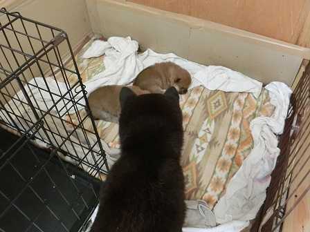 午後の所用を終えて帰宅した後にこの日はマリを2匹に会わせてみることにしました。