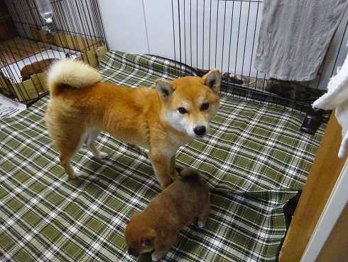 部屋に入ると妻が見守る中、2匹の守に精を出すナナ母ちゃんの姿がありました。