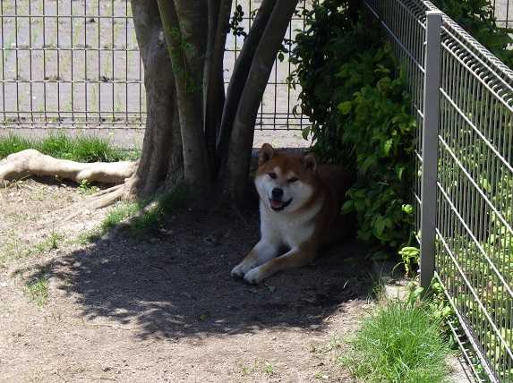 この日最後の一枚は、風通しの良い庭木の下で寛ぐカイ。