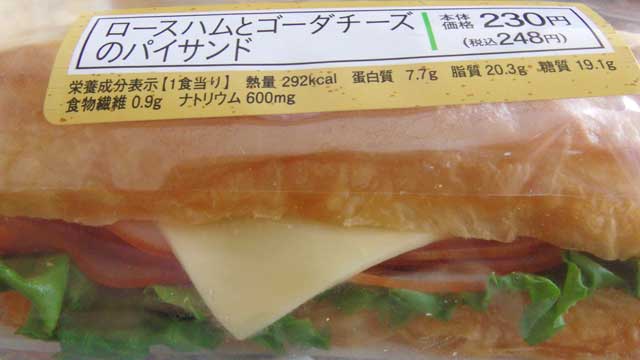 そして”ロースハムとゴーダチーズのパイサンド”。ハムとチーズの組み合わせは、旨味があって美味しいですね。木曜日の昼食で実感していたので買いました。