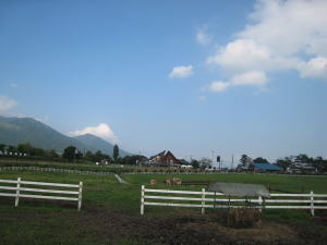 この間、娘2号がいる蒜山へちょこっとのぞきに行ってきました。 ここは、中国四国酪農大学第2牧場近くにある「ふれあい広場」学校のブログをみると、ジャージー牛を高原センターのところに10月まで放牧してあると書いてあったので行ってみたのですが・・・「ふれあい広場」に4頭だけ。どうやら、第2牧場へもう帰った後のようでした。(後でブログを読み直すと午前中だけと書いてありました(^^;)) 広場の柵からのぞいていると・・・ 「なんか、人間が来たわよ」・・って感じでこっちにやってきてくれました。牛ってなんかかわいいわぁ(^^) ジャージーのヨーグルトやソフトクリームはめちゃおいしいのよね~。 最近は、米子道の蒜山PAではご当地バーガーとしてジャージー牛のバーガーを売ってるらしい。でもって、美味しいらしい・・。娘2号もお肉も美味しいよと言ってたけど・・・このかわいらしさをみると・・・・なんだか・・です。
