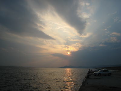 今日はお休みでした。このところ仕事でばたばたしていたので、肩もこりこり・・腰もイタタ・・ リフレッシュせねば・・・ということで朝から整体へ行ってそのままムービックスへ。前売り券を買ったままになっていた釣りバカを見ることに・・・ご当地ものだったのであぁここは下津井だぁとかここは鏡野町じゃないかと楽しく見ることができました。なにも考えずに笑えた(^^) 映画の後、釣竿を車に乗せていたのでそのまま玉島へ・・・釣りへ今日は潮が悪いとのことで、ままかりは釣れず・・・(T_T)隣のおいちゃんや、お兄ちゃん達はいいだこを釣ってまして・・・ほほう、ここでもつれるのねぇ・・今度は蛸つりの仕掛けも持って行かなくっちゃ・・ 釣れないので早々に諦め、玉島の人工島の探検へ。ヘルパー仲間のれいこさんから、いいポイントを教えてもらったので、場所確認・・・人工島の突先です。ここからの景色最高(^^)写真は、人工島から沙美海岸方面を望む夕日です。風は気持ち良いし・・・何人が釣り人はいまして、渡り蟹を釣られてました。蟹の仕掛けを教えてもらったので、ここにこなければ・・などなど思いながらしばし海と夕日を眺めてたそがれておりました。海を眺め風に吹かれると日常のことが小さなことに感じる・・・。 旦那さんのお友達が、ぶどうを作っているので今年も送ってもらいました。「清藤」のぶどうはめちゃ美味しいです。 ちなみにこれは、パックンこと「瀬戸ジャイアンツ」です。皮が薄いので皮ごと食べられるのが特徴です。美味しかった~シゲちゃんありがとね(^^)/ さて、明日からまたお仕事・・がんばろっと。