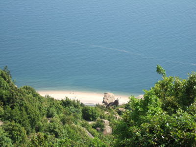 洗心の間にて昼食後、お腹いっぱいになったところで森林浴をしながら足湯へ 併設されているキャンプ場を抜け、山道をてくてく・・・山の木々からたくさんのマイナスイオンを吸収しつつ・・・合間に見える海をながめつつ・・・20分ほど歩くと 五色の湯~足湯~に到着。昨日までは調整中で今日から再開したばっかりとのこと(^^;)一日ずれていれば入れないとこでした 五色の石が敷き詰めてある足湯で、色ごとに温度も違います。隣では塩を作っているのでその蒸気も体に良いとのこと。 足湯でリフレッシュした後外に出ると・・ ハーブティが用意されてまして、外でのんびりいただきました。ここに植えてあるハーブを使っているそうで、この日はカモミールティ 波の音を聞きながら・・心地よい風に吹かれていると少しお昼寝したい気分に 潮が引いてきた海岸を少し散策した後、てくてく歩いて帰っていると キャンプ場の管理棟でたぬきさんを発見!私たちを見ても逃げようとはせず・・・ごみを目当てに出てくるとか。 この後は、洗心の間の隣にある国民宿舎にてお風呂へ入って、お土産を少し買って帰路へつきました。 江戸風呂・昼食・足湯券・国民宿舎の入浴券がついて2500円。一日のんびりすごせて、体も心もリフレッシュできる、おすすめの癒しの場所です。