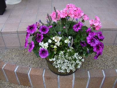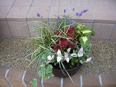 梅雨入りと同時に雨が上がり、すごしやすい天気でした。 ワールドカップサッカーはじまりましたね。ドイツは強かった。ここと引き分けた日本、どうでしょうか。楽しみです。 久々に寄せ植えを作ってみました。素材がいろいろ余っていたのでそれらを組み合わせました。ラベンダー、2種類のコリウス、ヘリクリサム・ペチオラレ、アイビー、ハツユキカズラそしてベアグラスです。結果的には葉物が主体となってしまいました。葉ものもそれぞれ葉の形が違ったり、色もいろいろですので、それなりに楽しめますね。 これは以前作っていた寄せ植えです。上の寄せ植えとは対照的に花が中心となっています。ピンク色のゼラニュウム、そしてアリッサムの白い花が増えてきて、色のバランスがとれてきました。 あすは天気がよければ庭の雑草とりです。がんばります。 ******************************* ★★★★今日の日記いかがでしたか? ガーデニングの人気ブログランキングに参加しています。よろしければ下記の画像をクリックしてくださいね♪↓↓