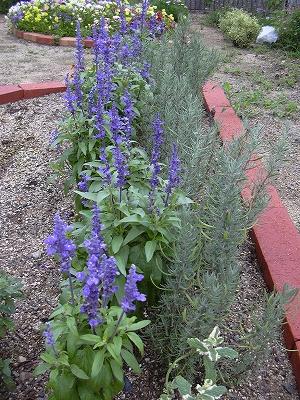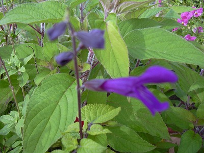 今日は一日何とか天気がよかったようですが明日から下り坂のようです。 今朝、サルビア・ガラニティカが花をつけていました。メドーセージとも呼ばれています。花は長さ5cm程度ですが、茎の先端に長さ25cm程度の花穂をつけ、萼の黒色と花弁の濃紺のコントラストが何ともいえない神秘的で美しいです。半耐寒性なので、越冬は可能です。半日陰で育て、表土が乾けば適度に水をやればOKです。セージは肉類の油ものとよく合うそうで、薬用としては強壮・精神安定の効果があると言われています。 そして、チェリーセージも次々と花を咲かせています。赤いかわいらしい花です。あとはパイナップルセージが咲くのを待つだけです。 セージは花を楽しむよりハーブとして料理などに使うといいですね。冬越しも簡単で手間いらずだよ。 今年はセージを植えてみませんか。 ******************************* ★★★★今日の日記いかがでしたか? ガーデニングの人気ブログランキングに参加しています。よろしければ下記の画像をクリックしてくださいね♪↓↓