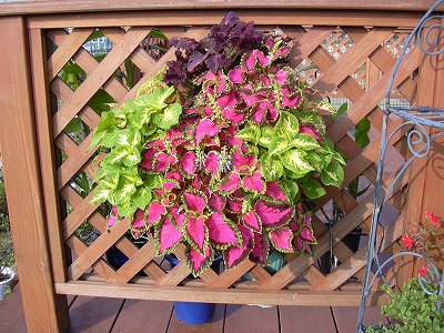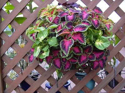 おはようございます。どんよりとした空です。予想通り週末は天気が崩れるのでしょうか。 昨日はツバキにたくさんのケムシが発生。その駆除に追われていました。これからの季節、病害虫との戦いですね。 さて、5月29日にコリウスの寄せ植えをし、日記にアップしました。下の写真です。 今日見ると、隙間がほとんどない状態で、ハンギングを覆ってきています。なんとなくそれらしくなってきました。理想はまるくこんもりと仕上げることです。このような楽しみもハンギングバスケットを利用した寄せ植えにはありますね。 また、1週間後くらいにアップさせていただきます。 ビオラが枯れたので、それに替えて余っていたコリウスの苗を植えつけました。宿根バコパとコリウスのコンビです。どのような形に変化していくのでしょうか。 以上、今日は葉っぱものシリーズでした。よい週末をお迎えくださいね。******************************* ★★★★今日の日記いかがでしたか? ガーデニングの人気ブログランキングに参加しています。よろしければ下記の画像をクリックしてくださいね♪↓↓