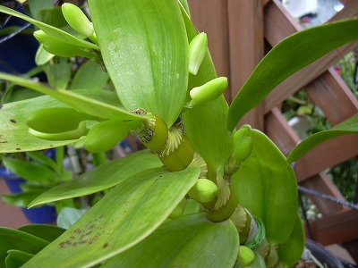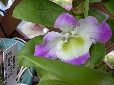 こんばんは。久々にデンドロビュームのネタです。今、デンちゃんたちはみんな外へ出し、ほったらかしの状態です。時々水をやっていますが。今日、ふと見ると’シャイニングライト’にひとつだけ花が咲いているではありませんか。ビックリやらうれしいやら。 花はセパル及びペタルがピンク白の地色に鮮赤味紫色のぼかし、リップはピンク白の地色に鮮赤味紫色の爪斑が入り喉部が明黄緑色で、以前咲いていたまんまです。このような時期に咲くものなんですね。******************************* ★★★★今日の日記いかがでしたか? ガーデニングの人気ブログランキングに参加しています。よろしければ下記の画像をクリックしてくださいね♪↓↓