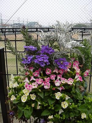 今日も朝から蒸し暑いようです。ムンムンします。今頃の時期、草花は病気にかかったり、枯れたりします。そこでできるだけ育てる数を減らそうとしています。 前に作った寄せ植えです。新しいものはありません。花の種類を少しずつ変えているだけです。トレニアも種類によっては枯れたものもあります。このようなハンギングバスケットの場合、特に水を頻繁にやらないといけません。そして、下に植えた植物が枯れてしまいますと上から全部取り除いて植え替えなければなりません。この時期、このような作業が大変ですね。この時期は暑さに強くあまり水を要求しないような草花を用いることが賢明かもしれませんね。 アメリカンブルーが咲き始めました。うれしいことに外で冬越しできました。結構寒さにも強いようで安心しました。涼しげなブルーの花をみるとホッとします。 ******************************* ★★★★今日の日記いかがでしたか? ガーデニングの人気ブログランキングに参加しています。よろしければ下記の画像をクリックしてくださいね♪↓↓