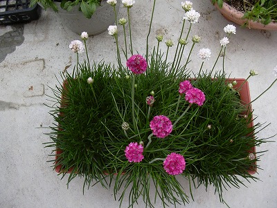 蒸し暑い今日この頃ですね。この間までは鉢植えで3日に1回程度、庭植えの植物には7日に1回程度の水遣りしかしていませんでした。草花がぐったりしたら水をやるといった具合でしたね。今では庭の草花にも毎日水遣りが必要となってきたようです。 庭を探しても目新しいものはあまりありません。アルメリアがたくさん花をつけています。アルメリアの開花期は普通3から4月ですので、かなり花期が延びています。ことしは全般に花期が遅くなっていますね。 そして、つるバラコンフィダンスです。満開寸前が可憐できれいです。サーモンピンク色の花が鮮やかでしょう。******************************* ★★★★今日の日記いかがでしたか? ガーデニングの人気ブログランキングに参加しています。よろしければ下記の画像をクリックしてくださいね♪↓↓