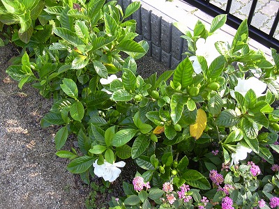 今日は一日蒸し暑かったですね。朝から日差しがさしていました。梅雨に入ると、雨が降らない日でも、なんとなく庭も憂鬱な雰囲気になります。 今朝、庭に出るとほのかな香りがしてきました。そうです。くちなしの花です。今年の咲き始めました。知らない間にいくつもの花が咲いています。白く、ビロードを重ねたような花びらです。最初は白いのですが徐々に薄い黄色に変化していきます。 夜の闇のなか、くちなしに光をあてるとこの白い花がくっきりと浮かんできます。そして蒸し暑い夜にはなぜかこの香りがよく似合うように感じます。 ******************************* ★★★★今日の日記いかがでしたか? ガーデニングの人気ブログランキングに参加しています。よろしければ下記の画像をクリックしてくださいね♪↓↓