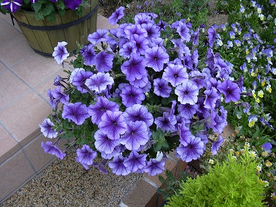 こんばんは。雨が断続的に降っています。大雨のようです。いよいよブラジル戦が始まります。期待したいけど相手がブラジルだもんね。なんとか勝ちを譲っていただきたい心境です。でもやってみなければわからないので奇跡を信じたいです。 ペチュニアが満開です。ペチュニアの花は雨に弱いので軒下に入れています。ブルー、バイオレットの花色がこの季節にはよく似合いますペチュニアの背後ではパンジーモルフォが今でも咲き続けています。そろそろ害虫もいっぱい発生しています。早めに駆除しなければ大変そうです。 ●ペチュニアブルーアイス ●ペチュニア******************************* ★★★★今日の日記いかがでしたか? ガーデニングの人気ブログランキングに参加しています。よろしければ下記の画像をクリックしてくださいね♪↓↓