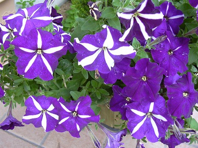 こんばんは。蒸し暑いですね。この言葉しか出ません。今日も熱帯夜です。夕方、市内から自転車で帰ってきました。市内は熱気ムンムン。やはり車などが多いせいでしょうか。海辺の我が家に近づくと涼しげな風が吹いてきます。やはり市内中心部と郊外では気象条件が違うのでしょう。それを肌で感じました。郊外に住んでよかったと思います。 さて、今日のお花です。なんとなくペチュニアでしょうか。紫色の花が個性的で私の目を引きつけます。****************************** ★★★★今日の日記いかがでしたか? ガーデニングの人気ブログランキングに参加しています。よろしければ下記の画像をクリックしてくださいね♪↓↓