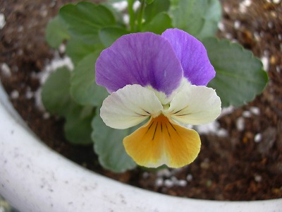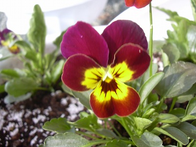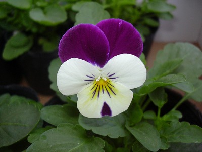 今日もいい天気。朝からいろいろあって大忙しでした。やっとパソコンの前に向かっています。 今までビオラだけをご紹介しましたが、久しぶりにパンジーも・・・ポット上げしたばかりですが、咲いていますよー。エクリップスです。 白い覆輪の入るシックな色彩です。ちょっと変わっているでしょう。花径は4センチ程度でしょうか。ビオラも良いけど存在感はやっぱりパンジーかな。 今日もご訪問ありがとうございました。今日の日記いかがでしたか? ガーデニングの人気ブログランキングに参加しています。よろしければ下記の画像をクリックして帰ってくださいね♪↓↓パンジー・ビオラ セレクション ハンギングバスケット セレクション