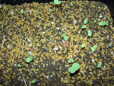 以前、asako^さんにいただいたアスペルラの種、9月24日に撒きました。 こんなお花が咲く予定です。 今週の日曜日に種床をのぞいてみるとなんと徒長した苗がいっぱい、かなりショックでした。その後、あわてて外に出し、日光浴。いまは双葉がはっきり出てきました。ちょっと一安心ですが、徒長した苗はだら~んとしたままです。 種によって発芽までの期間がまちまちなんですね。今週の日曜日に撒いた矢車草の種はもう昨日発芽しておりました。今日、外に出しました。来年のためにいろいろ記録しておかないとね。 今日もご訪問ありがとうございました。今日の日記いかがでしたか? ガーデニングの人気ブログランキングに参加しています。よろしければ下記の画像をクリックして帰ってくださいね♪↓↓