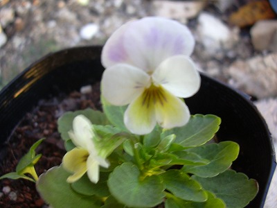 今日はさわやかな一日でしたが、ちょっと暑かったかな。 新入りのビオラ ローズフェイスが開花しています。這い性なので鉢に植えるとこんもりと咲き続けるはずなんです。まだ、たった一輪しかしていません。 この品種をネットで調べているのですがどこにも出ていません。もしかしたら品種名を間違ったかなと思って、デジカメで撮影していた品種名を見ても間違ってはいませんでした。もしかしたら農園のオリジナルかもね??? 花の大きさは2センチメートルくらい。ローズフェイスと言っていますが、どちらかというと今はバイトレットフェイスかな。そのうち花色が変化するのかな。しばらく観察してみようっと。 今日もご訪問ありがとうございました。今日の日記いかがでしたか? ガーデニングの人気ブログランキングに参加しています。よろしければ下記の画像をクリックして帰ってくださいね♪↓↓