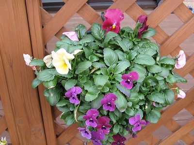 結局、夕方ごろからこれで明日は草花の水遣りをしなくても済みます。ラッキー!! ハンギングバスケットに使っているパンジー F1インペリアルアプリコットシェードの咲き方がパッとしません。早くから種まきしているのに成長がいまいちです。こんもりなるにははるまで待たないといけないのでしょうか。今日もご訪問ありがとうございました。今年もガーデニングの人気ブログランキングに参加しています。 よろしければ下記の画像をポチットして帰ってくださいね♪↓↓