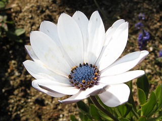 オステオスペルマム、宿根草です。 日が当たると花が開くという性質がありますので、日が当たる日しかお目にかかれません。白い花が太陽の光を浴びてまぶしく輝きます。まだ一輪しか咲いていませんが。群生するときれいです。 昨年は春に下の写真のように寄せ植えに使っていました。その後、花壇に植えつけました。今年も寄せ植えに使いたいお花です。今日もご訪問ありがとうございました。今年もガーデニングの人気ブログランキングに参加しています。 よろしければ下記の画像をポチットして帰ってくださいね♪↓↓
