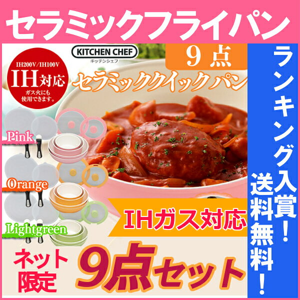 なべなべなべー( ´艸`)♪ 【送料無料】セラミッククイックパン 9点セット CQP-SE9J 【IH対応】セラミックフライパンピンク・オレンジ・グリーン アイリスオーヤマ〔鍋/炒め鍋/ティファール(T-fal)のようなフライパン〕【RCP】◆2