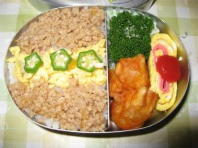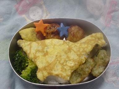 ネタと朝の体力の限界を感じている今日この頃です。今日は『恐竜弁当』クッキーの型抜きでとった恐竜ご飯の上に薄焼き卵も型抜き。どんどん手抜きになって来ました