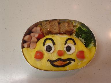 こんなへたくそなキャラ弁なのに先生もお友達もとても楽しみに待ってくれているそうもうネタが尽きちゃいました。朝の弱いママにはとても大変です。食が細い次男は幼稚園のお弁当はデザートも含め毎日完食空っぽになってくるお弁当を見ているとやめるわけにもいかず・・・。今日はカレーパンマンのオムライスです。ハンバーグは星型に抜いています。