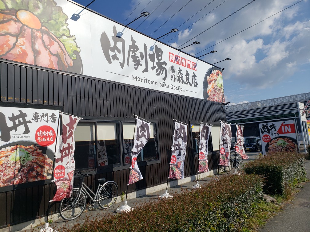 実は、R175の森友交差点のところに、新しいラーメン店が出来たので行って見たのだが、何と臨時休業。気を取り直して、道中に見つけていた同店へ。どうやら肉丼の専門店みたい。定食も有りますね。では、いざ、突撃!丼専門店にしては、ものすごい広い店内。ボックス席まで用意されている。同店はますタッチパネルでメニューを選ぶシステム。後ろに人が並ぶと嫌なので、急いで入力開始。数々ある肉丼の中から、黒毛和牛丼(肉増180g)をチョイス。食券をゲットしたら、今度は精算機で支払いを済ませる。お冷やお箸などはセルフで用意。今回はこのカウンター席に陣張り。テーブルアイテムも3種類の味変ペッパーが用意されている。その後は、モニターに自分の番号がチカチカしたら、引き渡しカウンターに取りに行く。配膳タイム!おおっ!ええ感じやないですかっ!卵スープ、お替りOK!もやしナムル、お替りOK!豪快に焼肉を乗せて、さらに追いタレを掛けてある。ええ香りやないですかぁ!肉質も良し、脂身も甘し、タレはご飯にベストマッチ!うんまい!!!3分の1くらい食べた時点で、スープ、ナムルをお替り、何かお得感あるぞ!残り3分の1でレッドチリペッパーで味変、うんまい!これは、違うメニューも是非食べて見たい。ごちそうさまでした。■店名:肉劇場番外 森友店■ジャンル:肉丼 定食■住所:兵庫県神戸市西区森友2-39-2■TEL:078-939-8989■営業時間:11:00 - 23:00■定休日:未確認■HP:https://nikudonsenmonten.com/news.html■食べログ:https://tabelog.com/hyogo/A2801/A280111/28069879/☆ランキング参加中☆下の3つのバナーをポチッポチッと押して下さい。ご協力お願いしますm(__)mにほんブログ村近畿地方食べ歩きランキング食べログランキング☆食べログ個人ページhttps://tabelog.com/rvwr/tamao/【島玉夫の過去ブログ】◇続.播磨の国は食マルシェhttps://plaza.rakuten.co.jp/harima2/diary/◇播磨の国は食マルシェhttps://plaza.rakuten.co.jp/harimanokuni/◇淡路島食道へようこそhttps://plaza.rakuten.co.jp/shimatamao/diary/