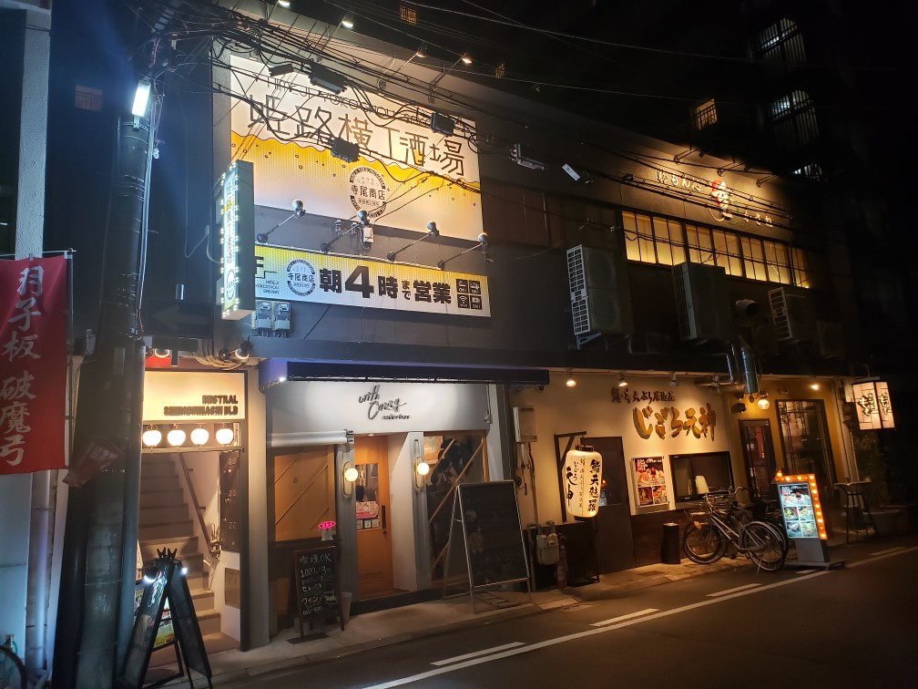 恒例の仕事休みちょい飲み。この度は、姫路の下町である忍町のビル2階にある居酒屋さんへ。肉系や海鮮系などバラエティーに富んだ料理が楽しめるみたい。階段で2階へ上がる。右折して同店前へ。では、いざ、突撃!店内は、焼肉屋さんのような雰囲気。カウンター席と厨房。焼き台があるので、やっぱり焼肉がメイン?テーブル席に座って、すぐに生ビールをオーダー、うんまい!メニュー物色。焼肉メインと思ったら、魚料理が豊富やな。貝料理もコンロで焼くみたい。蟹甲羅焼きもうまそーやな。一番気になったのがこのメガ岩牡蠣フライ。いの一番にオーダーしたが、この日は未入荷、残念。やっぱり焼肉もあるわ。生牡蠣も気になったが、何となくやめた。ドリンクメニュー豊富。刺身系もいろいろあるぞ。お好み焼きまでメニューにあり。ご飯もの。配膳タイム!まずはトマトスライスから。まるまる1個登場。カキフライ。メガ岩牡蠣はなかったが、普通さいずはある。うんまい!ここで赤ワインにチェンジ。ゴマザバ刺身。九州系の甘い醤油でいただく。うんまい!せっかくコンロがあるので、ちょっと焼いとこ。牛バラとせせりをチョイス。きゅうり浅漬け。ここらで焼酎お湯割り(麦)。いつも一緒やな。うんまい!半分くらいを網に乗せる。さぁ、焼けて来ましたよ。濃い目のタレでいただきました、うんまい!メニューも店内レイアウトも、韓国系居酒屋みたいな感じでした。ごちそうさまでした。■店名:姫路横丁酒場寺尾商店■ジャンル:居酒屋、海鮮、バーベキュー■住所:兵庫県姫路市忍町12 2F■TEL:079-280-4242■営業時間:17:00 - 04:00(L.O. 03:00)■定休日:未確認■インスタ:https://www.instagram.com/shojiterao/■食べログ:https://tabelog.com/hyogo/A2805/A280501/28069573/☆ランキング参加中☆下の3つのバナーをポチッポチッと押して下さい。ご協力お願いしますm(__)mにほんブログ村近畿地方食べ歩きランキング食べログランキング☆食べログ個人ページhttps://tabelog.com/rvwr/tamao/【島玉夫の過去ブログ】◇続.播磨の国は食マルシェhttps://plaza.rakuten.co.jp/harima2/diary/◇播磨の国は食マルシェhttps://plaza.rakuten.co.jp/harimanokuni/◇淡路島食道へようこそhttps://plaza.rakuten.co.jp/shimatamao/diary/
