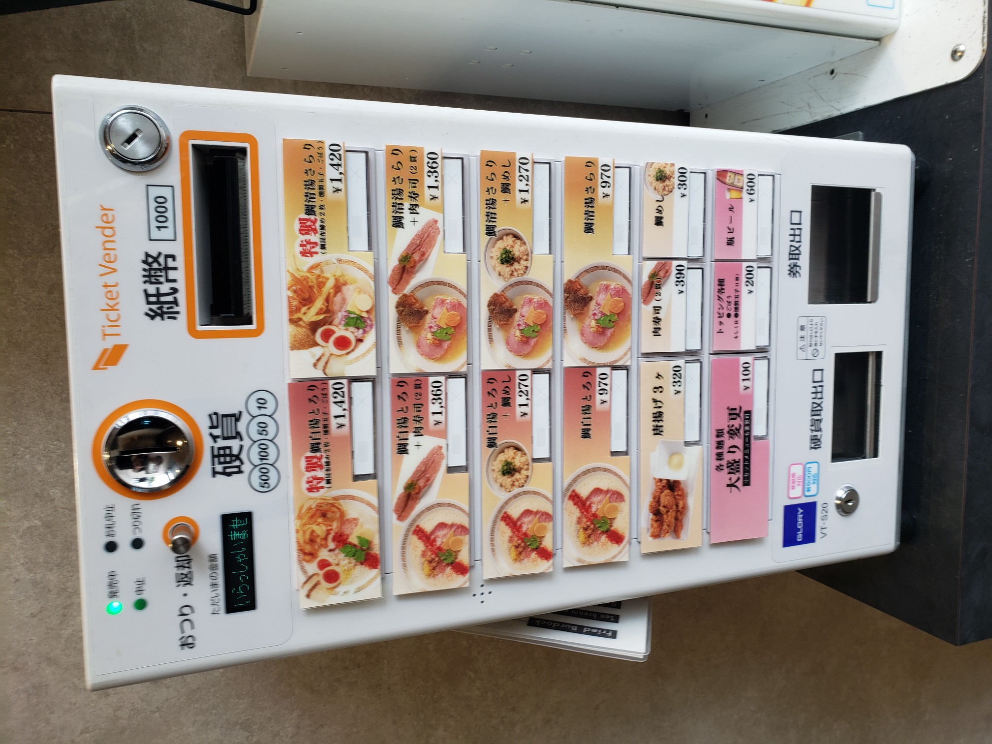 もう食券を購入してオーダー済みだが、改めてメニュー物色。鯛ラーメンは「とろり」と「さらり」。