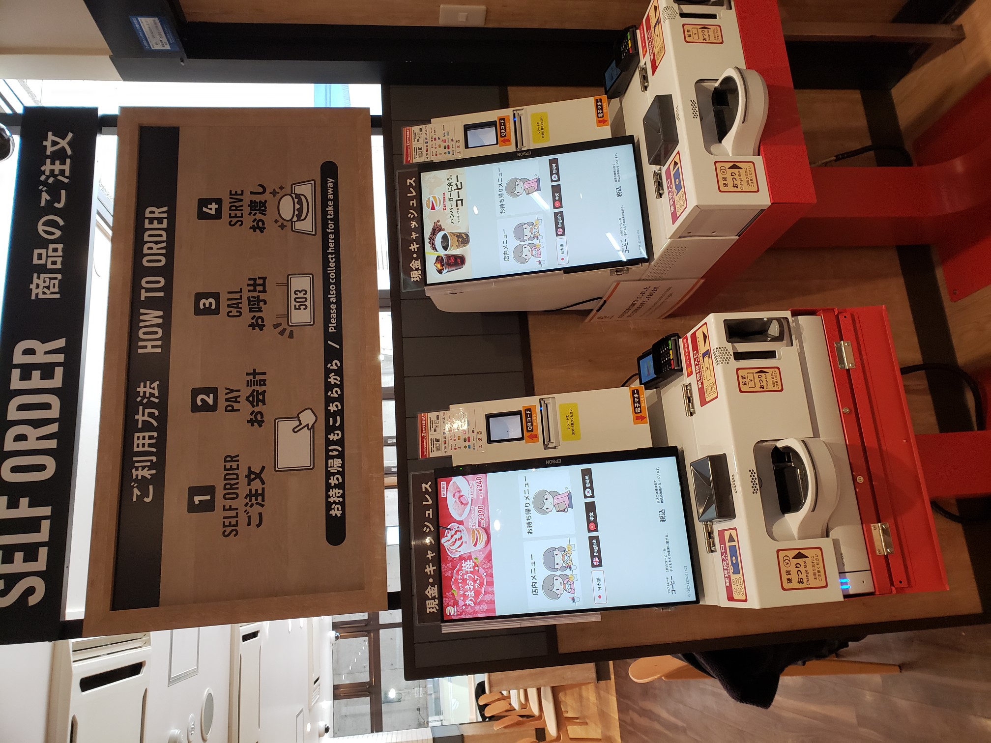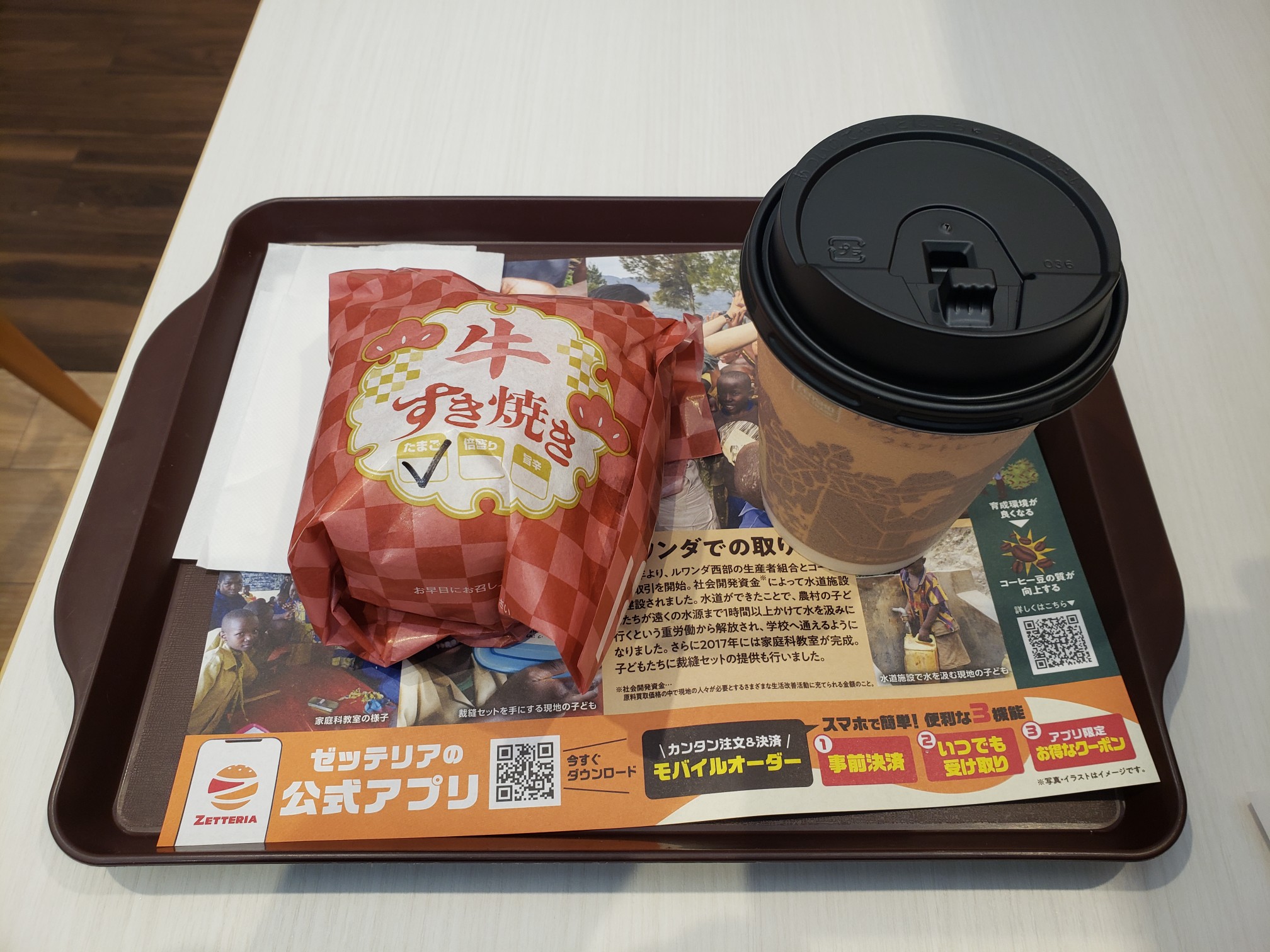 入店してすぐにオーダーシステムがあるので、まずはココでオーダー&精算。今回は、現フェアーメニューから「たまご牛すき焼きバーガー」をオーダー。