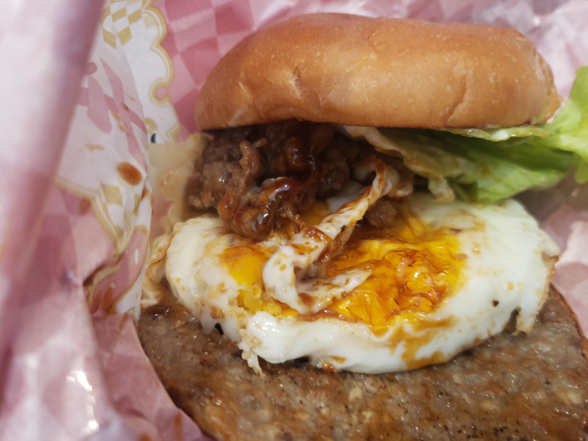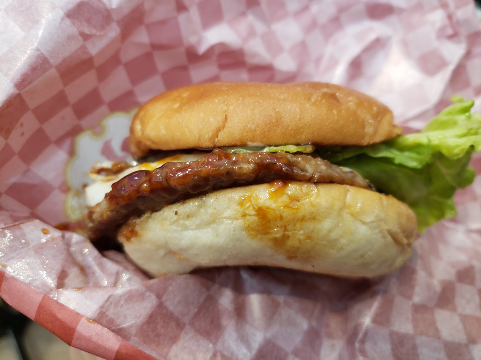 下から、パテ・たまご・レタス・すき焼き肉の順で挟んである。