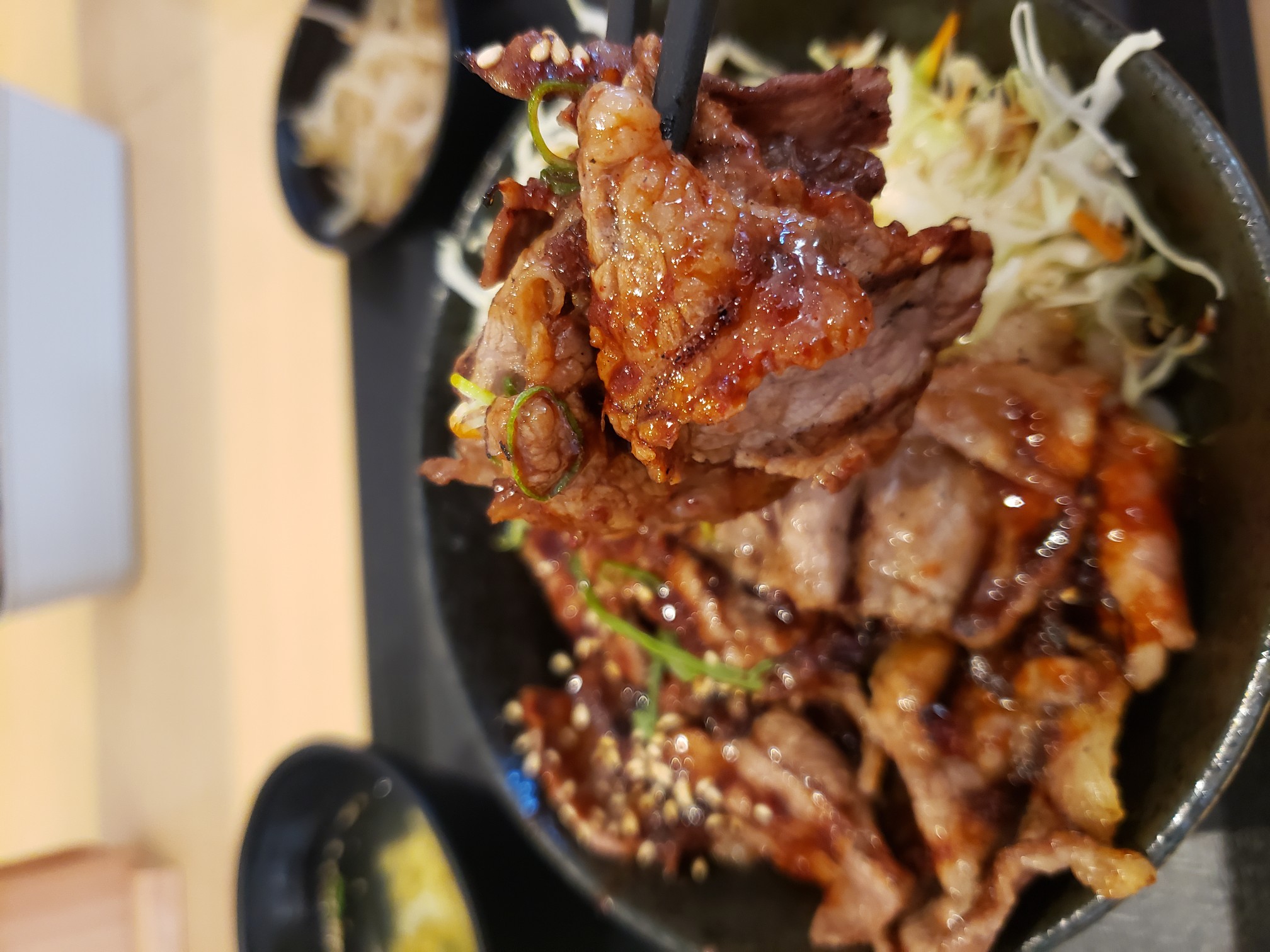 豪快に焼肉を乗せて、さらに追いタレを掛けてある。ええ香りやないですかぁ!