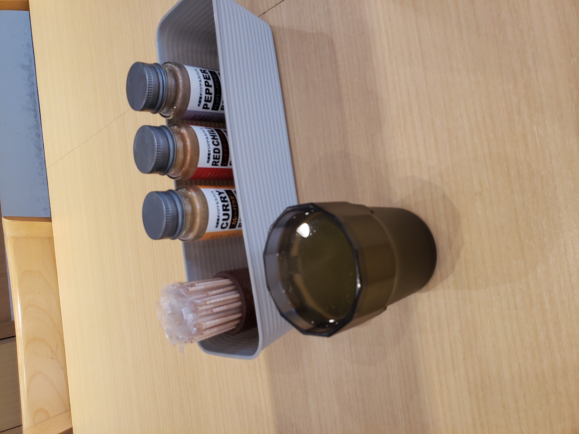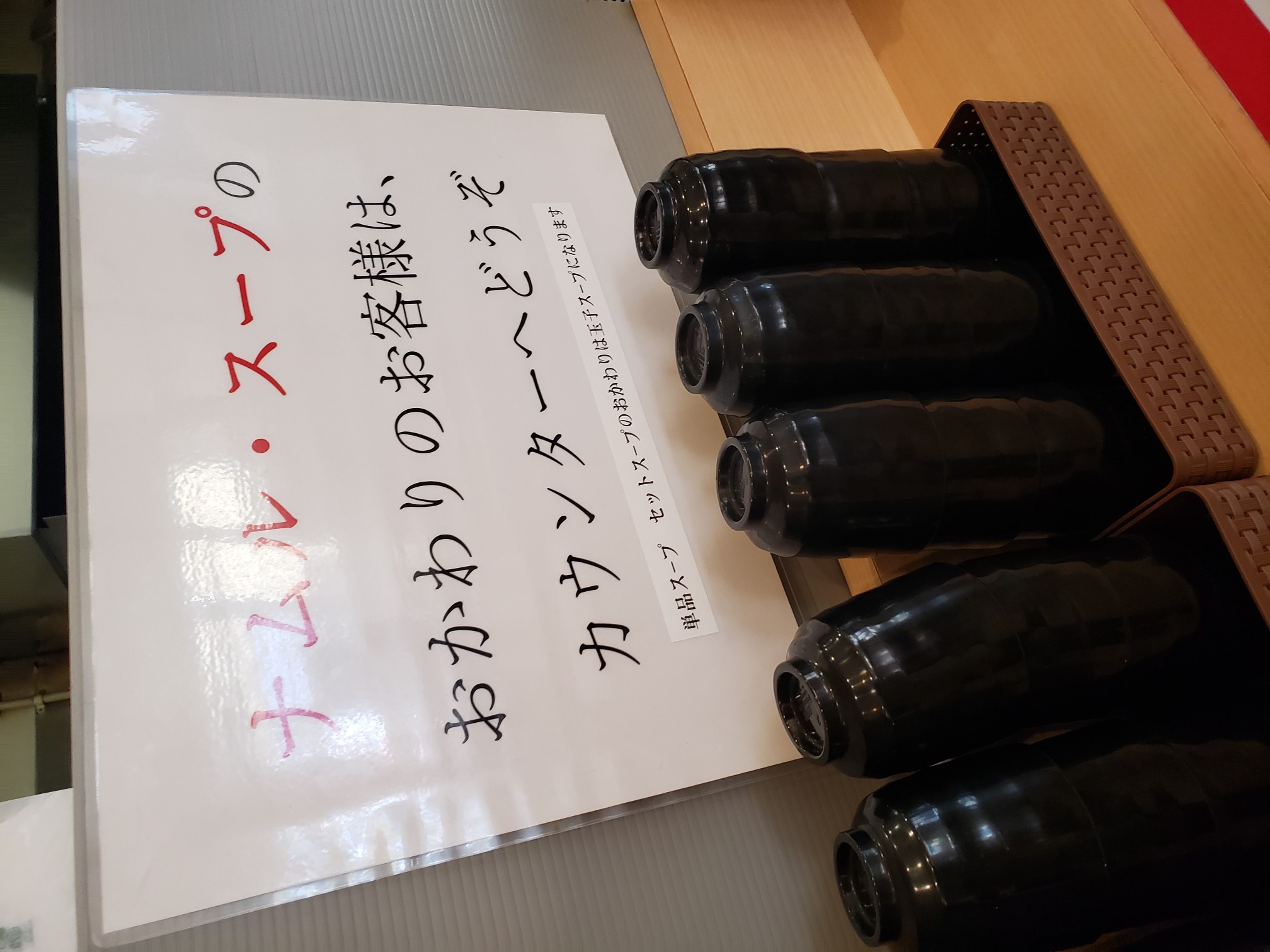 今回はこのカウンター席に陣張り。テーブルアイテムも3種類の味変ペッパーが用意されている。