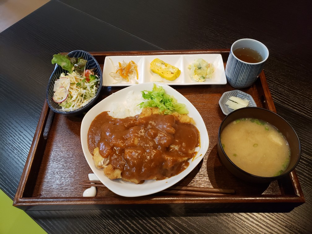 メニュー物色。イーゼルに貼ってあったやつをご参考。ランチは3種類。今回はこの中から「チキンかつめしランチ」をオーダー。