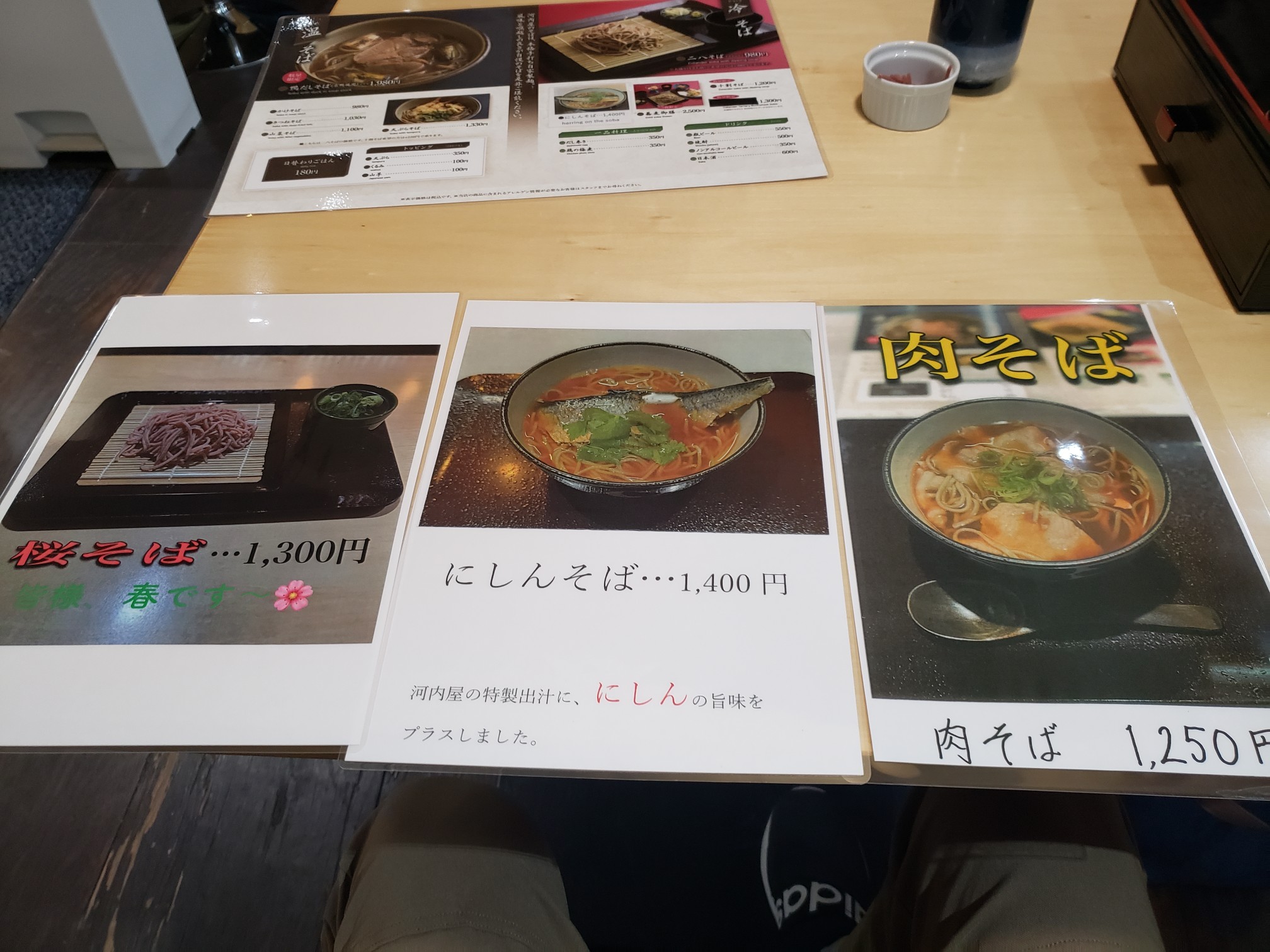 季節の蕎麦や、にしんそば、肉そばなど定番が揃う。