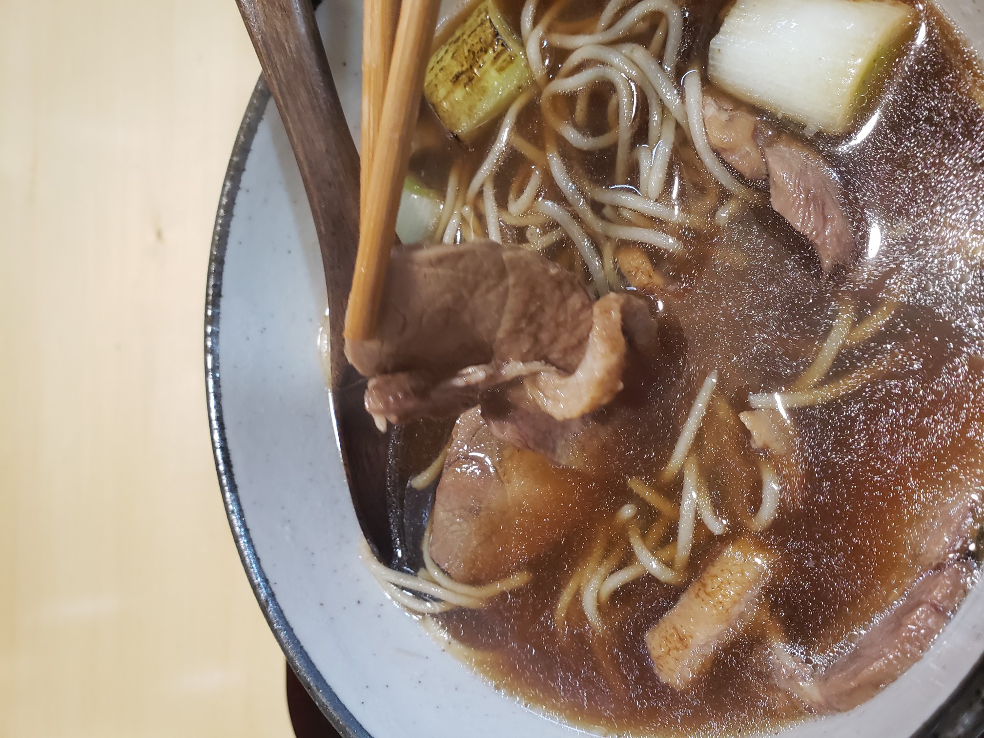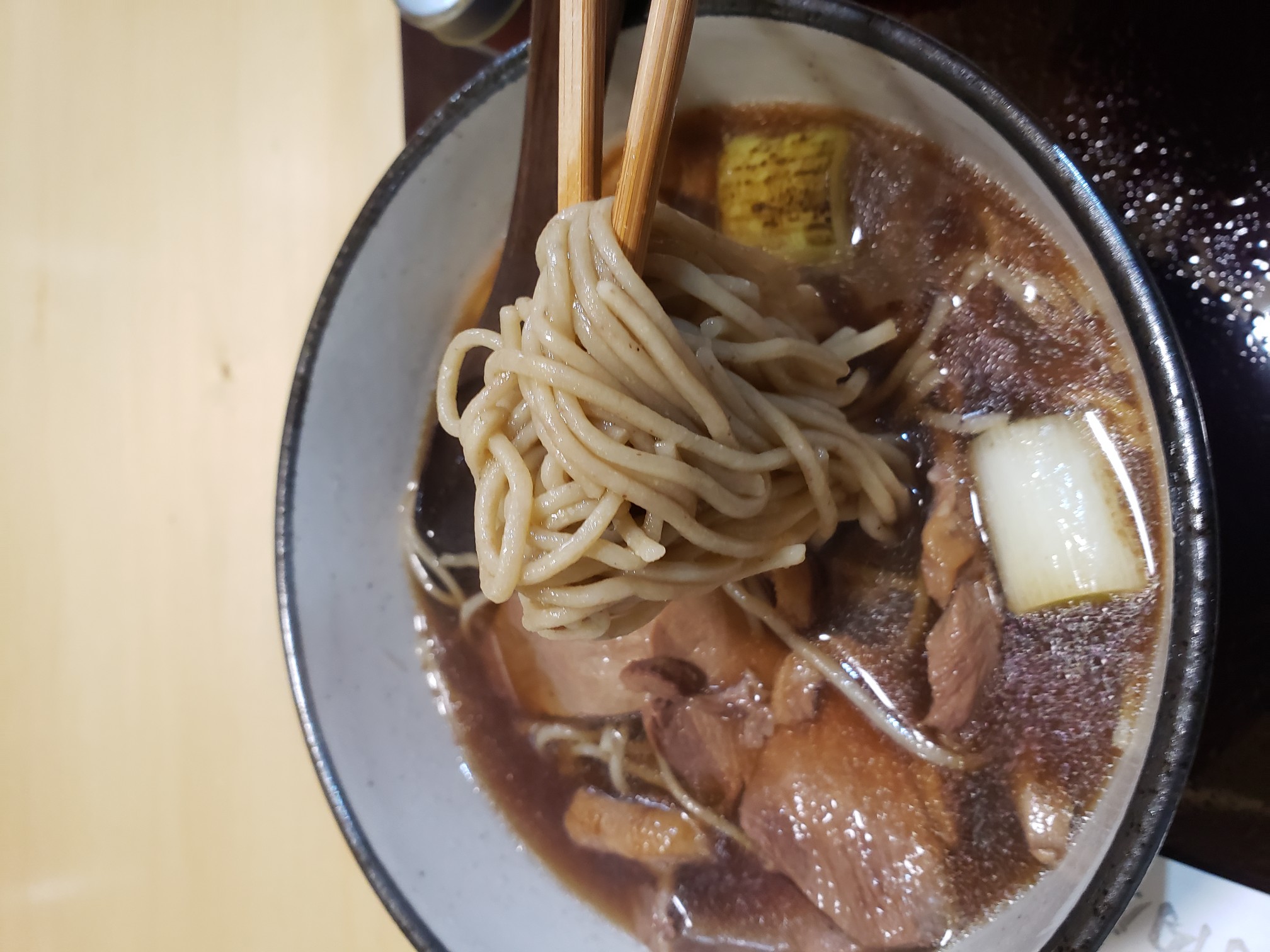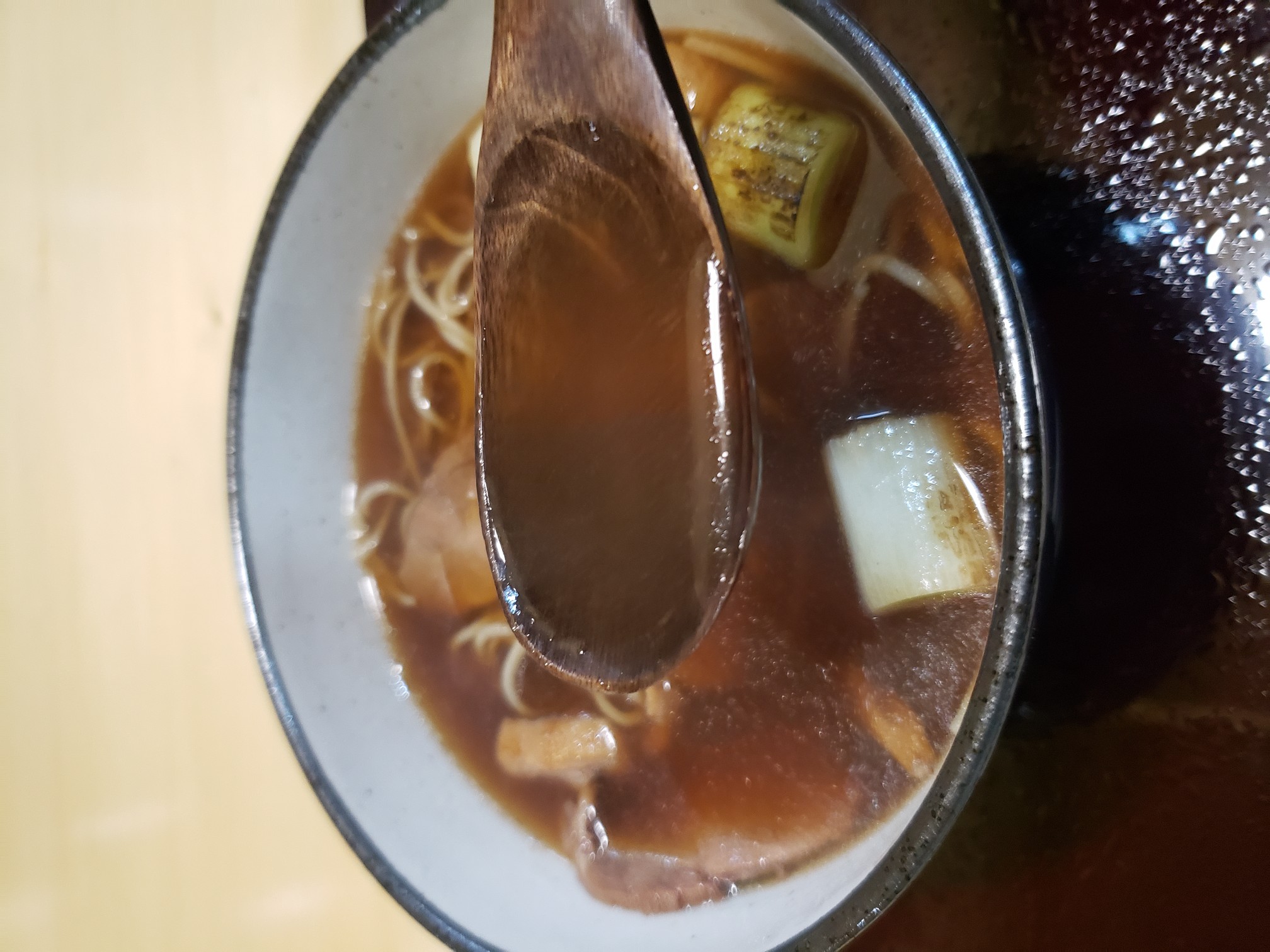 結構濃くて甘味がある出汁。過去の煮汁をカエシに使ってる?