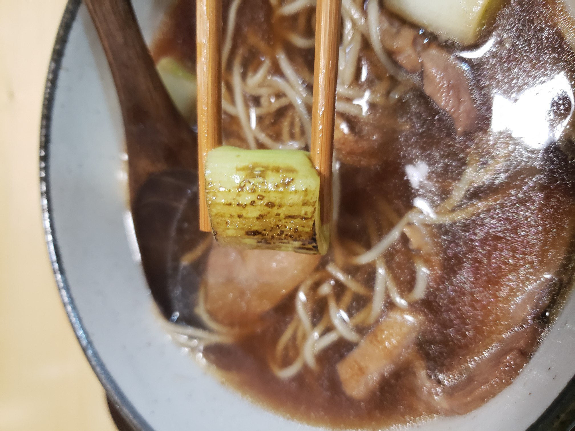 焼きを入れた白ネギ。これは出汁によく合う、うんまい!