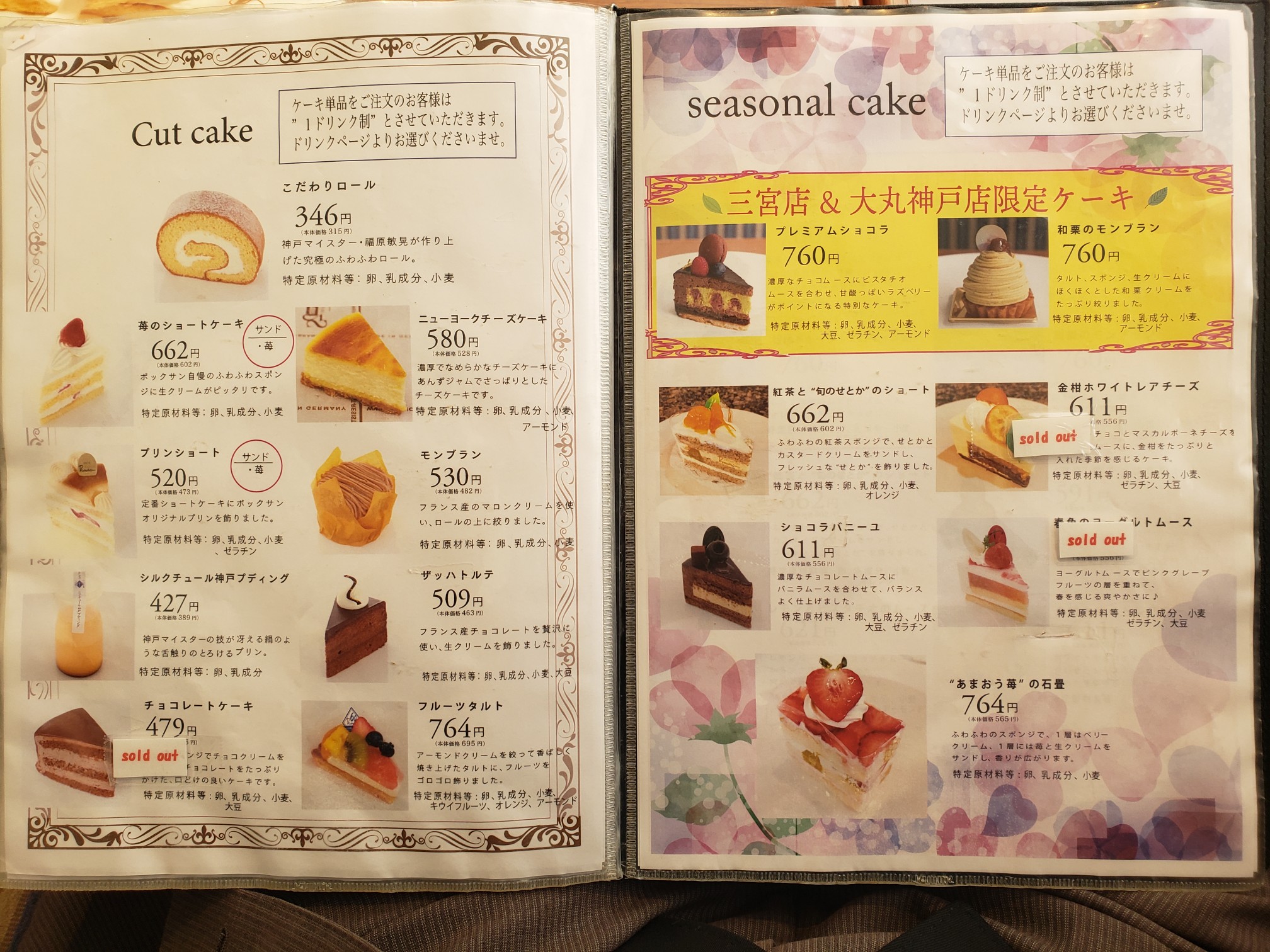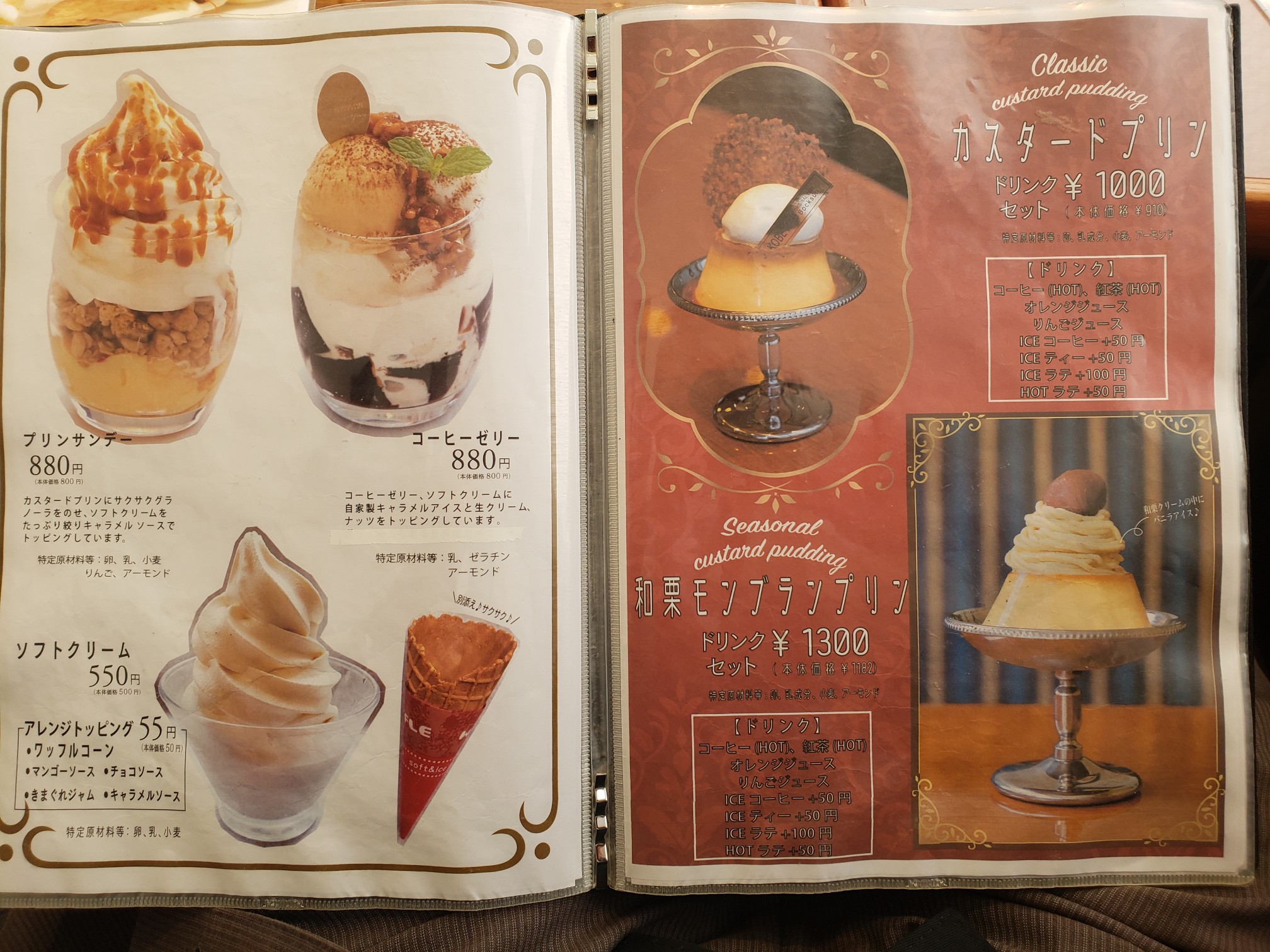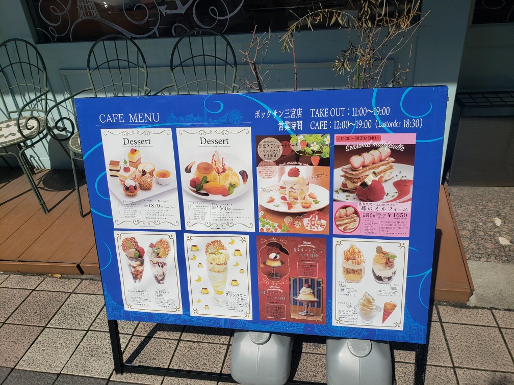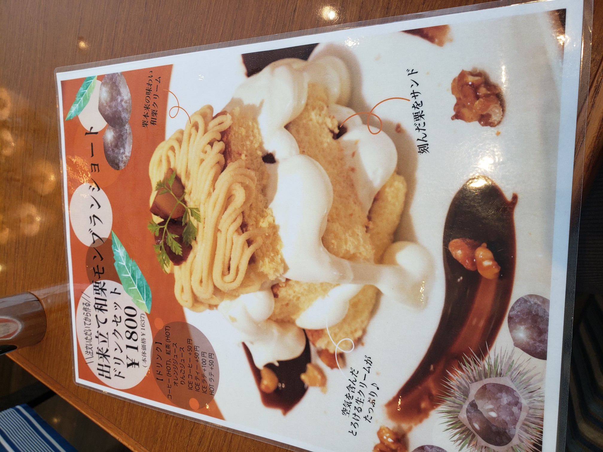 メニュー物色。最初はこのモンブランを狙っていたが、この日は入荷なし。