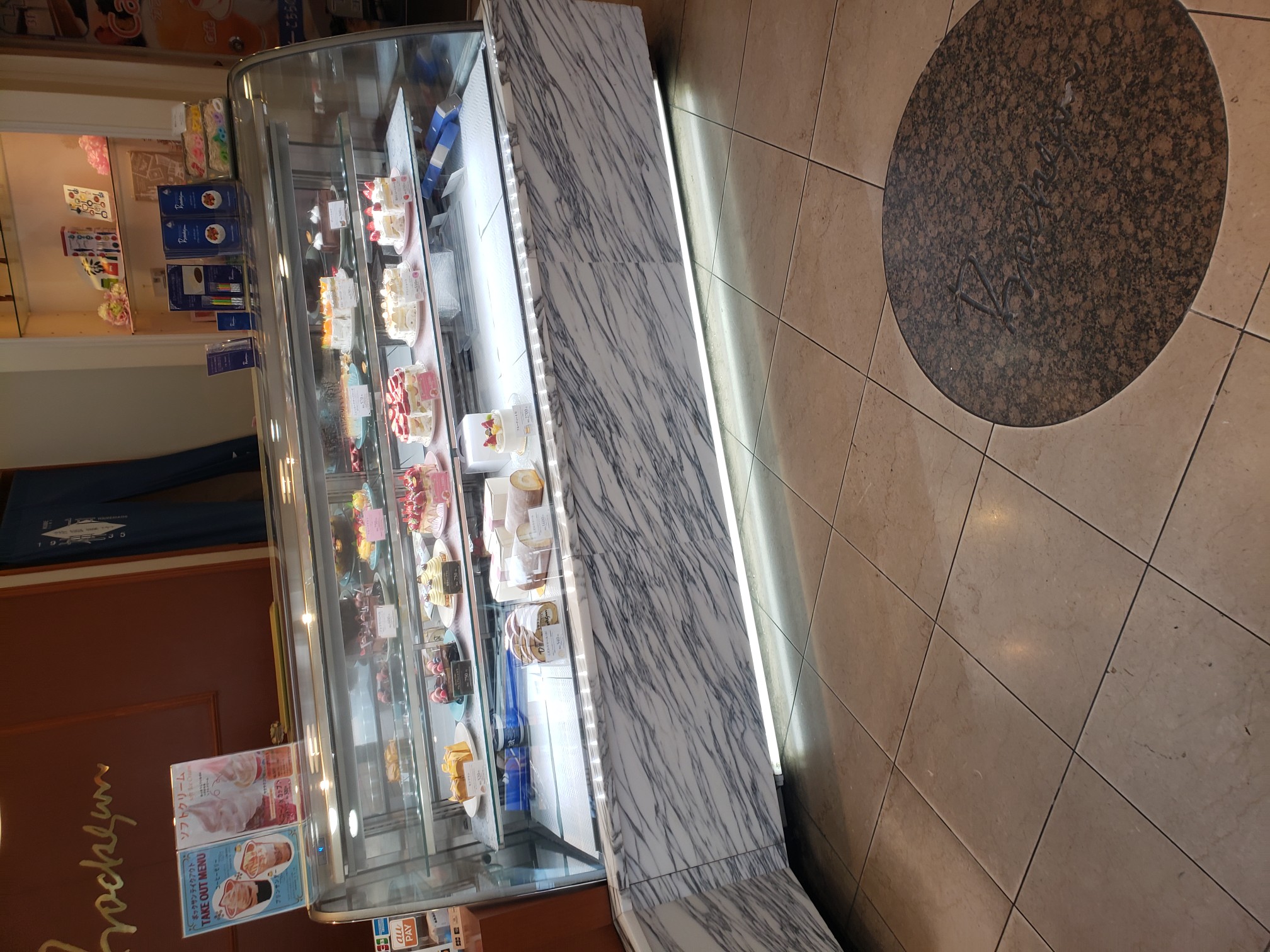 入って正面にショーケース。種類はそんなに多くないが、1個がいいサイズ。
