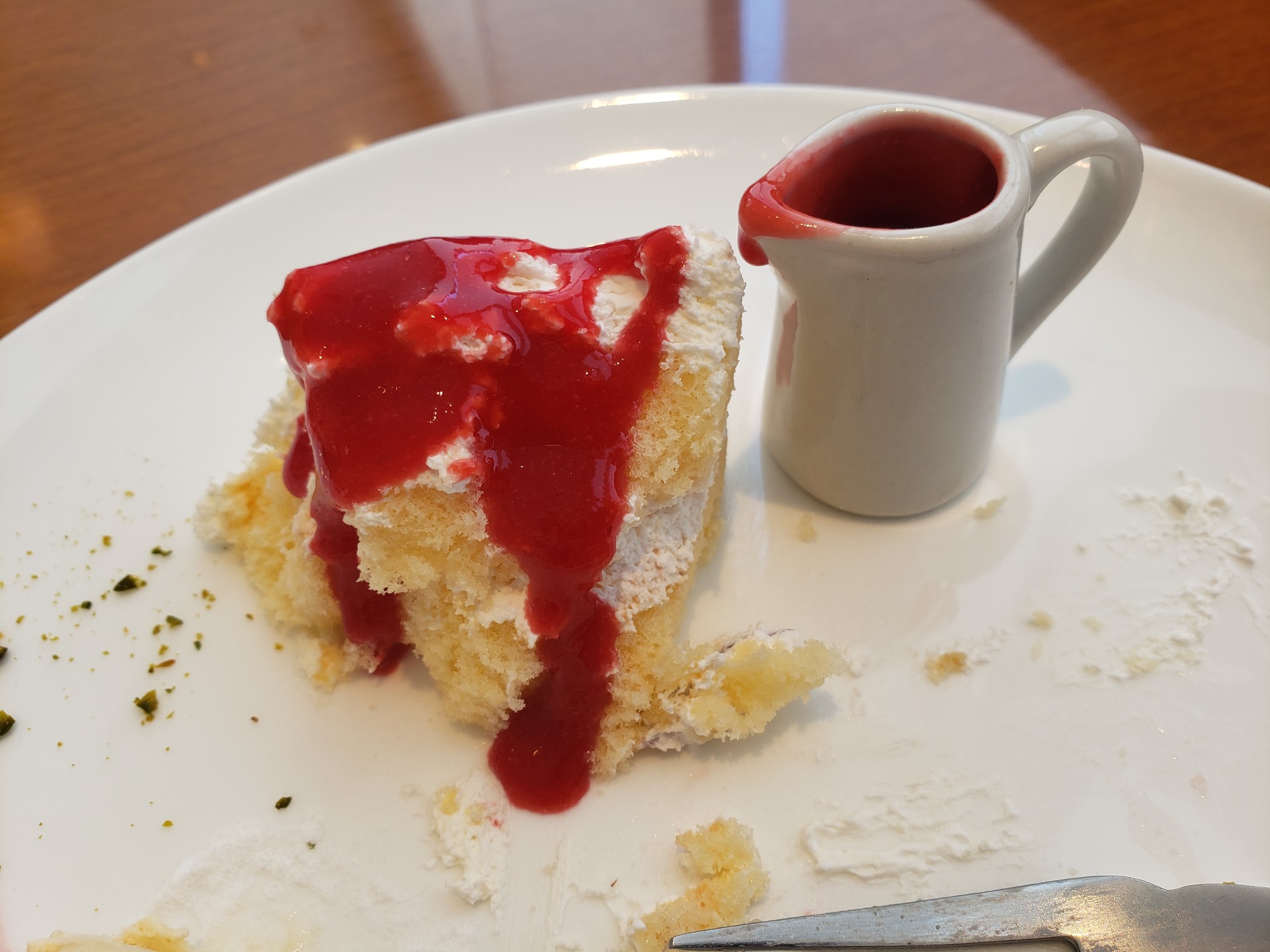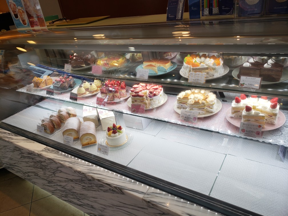 ケーキコーナー。ランチを食べたばっかりやし、普通にケーキで行こう。どうせなら、再度1階のショーケースを覗いてみよう。