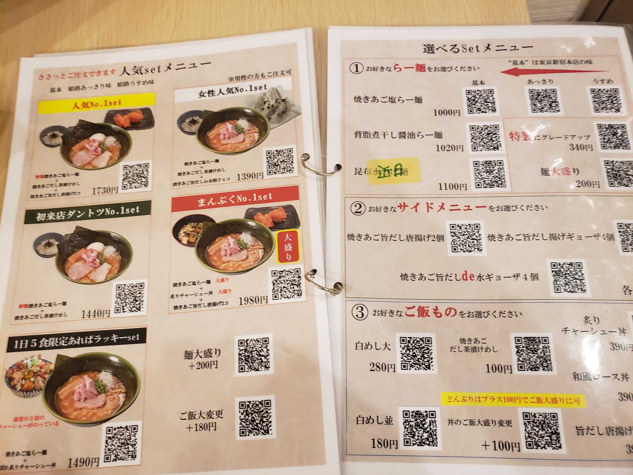 入口でメニュー物色。焼きあご出汁や煮干しを使った豚骨&魚介のダブルスープがウリ。