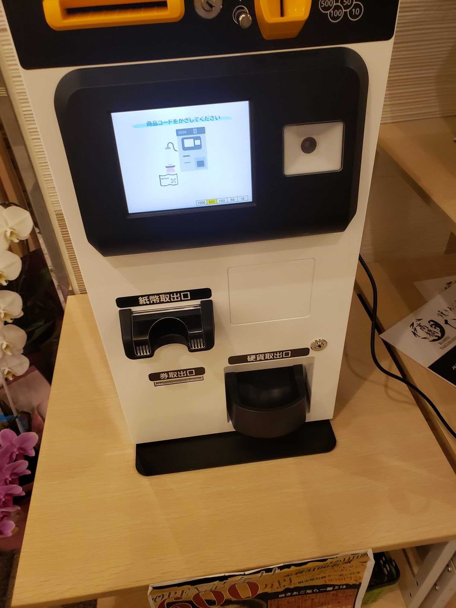 精算機と繋がっているハンディーで、注文する商品のQRコードを読み込ませる。